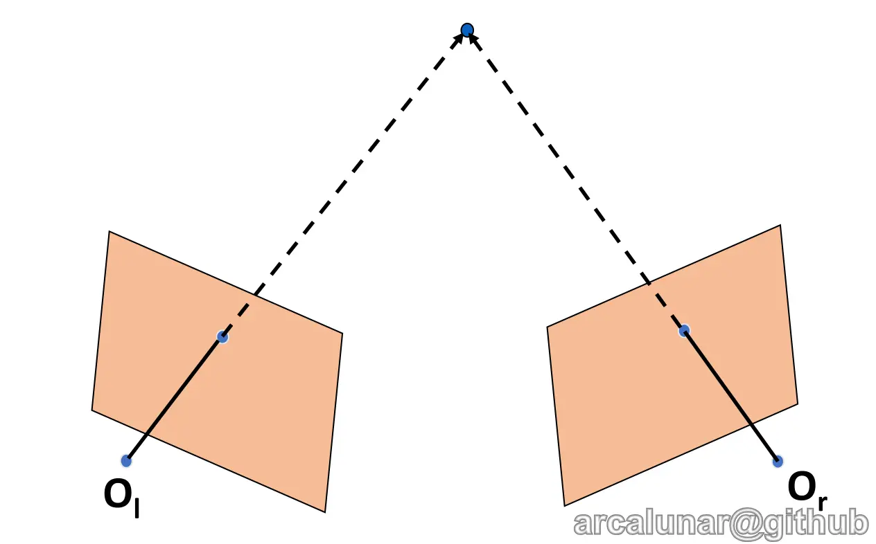 - 假设 Pl 配对上了 Pr,那么我们依然可以利用 Triangulation 计算出物体的坐标.
